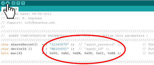 Important: Because in this example the Arduino will work in VMCU mode, you will not need modify the Arduino's code. The Arduino will be controlled from the Cloud through the NearBIOS.